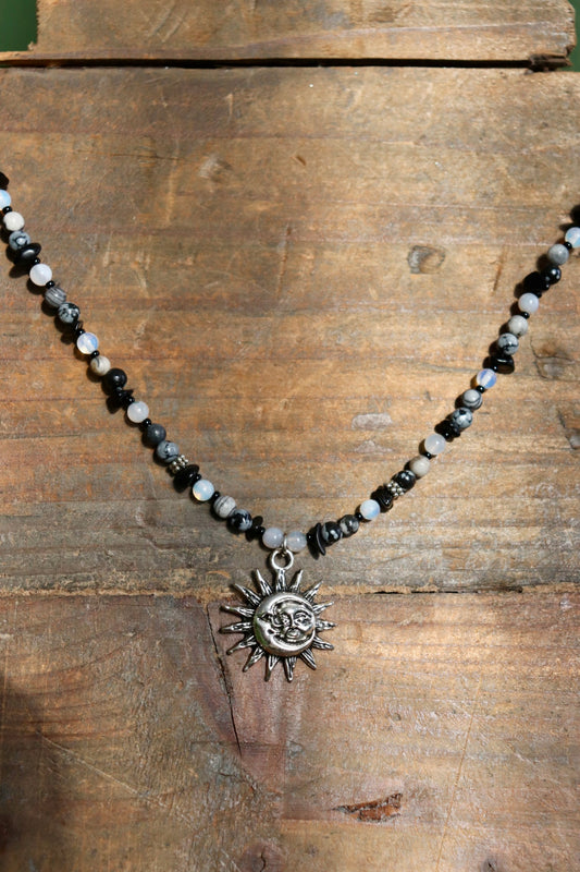 Silver Sun Moon Beaded Necklace