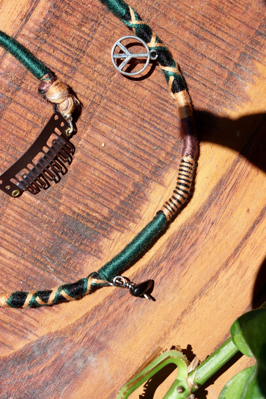 Yellow & Brown Peace Sign Clip-In Hairwrap