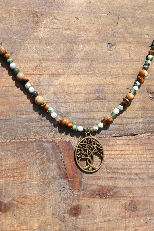 Unakite Beaded Tree Necklace