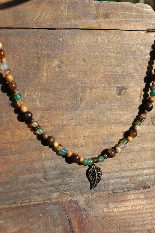 Earthy Leaf Beaded Necklace